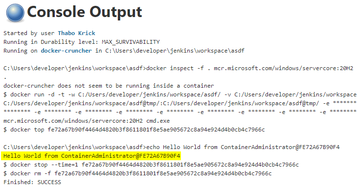 Now we can build it using the docker command line. Let’s cmd or powershell on the windows machine that we recently connected as a new Jenkins agent and navigate (cd) into the directory of the Dockerfile. Now we can call: